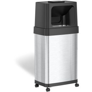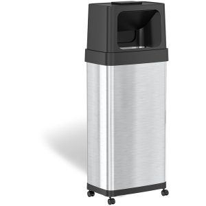 HLS Commercial Dual Push Door Odor Control Trash Can – Push Door Opening – 24 gal Capacity – Rectangular – Wheels, Fingerprint Proof, Smudge Resistant, Mobility – 42.2″ Height x 11″ Width x 17″ Depth – Stainless Steel – Silver – 1 Each